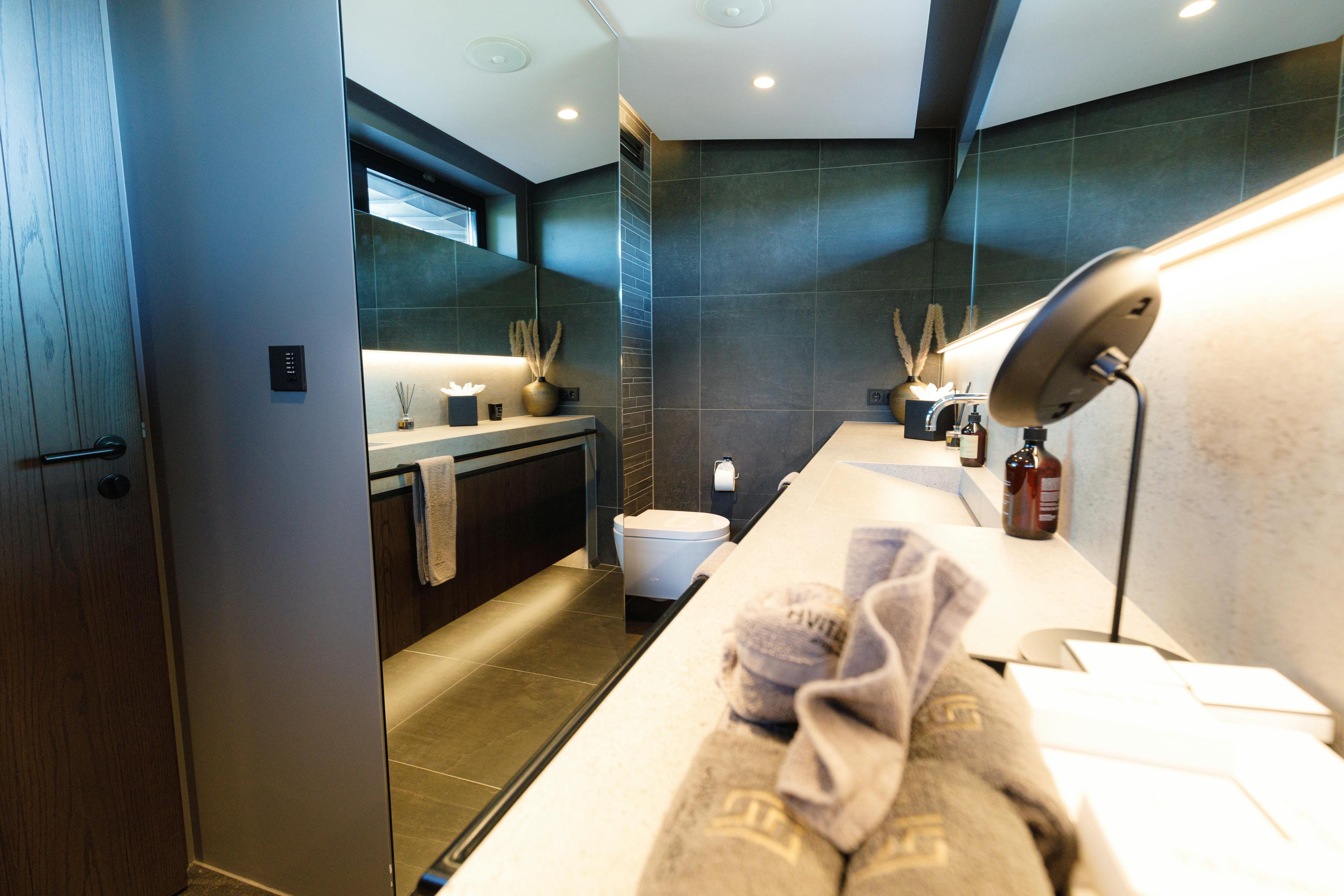 The guest suite offers a perfect blend of comfort and luxury, featuring a premium Hästens bed for a restful night’s sleep. The en-suite bathroom provides convenience and privacy, while the Apple TV lets you enjoy your favorite shows and movies in style. A true retreat for relaxation. The guest suite offers a private en-suite equipped with all essential amenities for comfort and convenience.